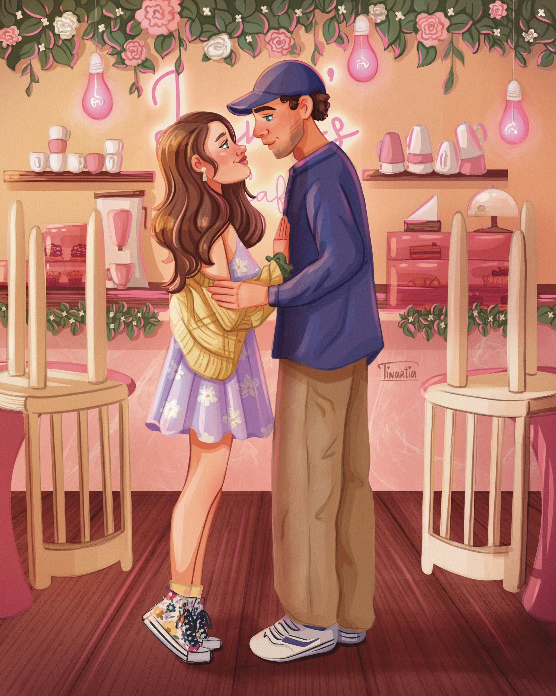 A komfortzóna projekt által inspirált 2db illusztráció. A5(színes kávéházi jelenet) és A6(idézet és karakterek) méretekben.